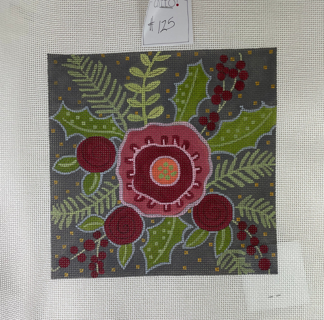 *Ditto Needlepoint Works #125 Red Flowers with Greenery