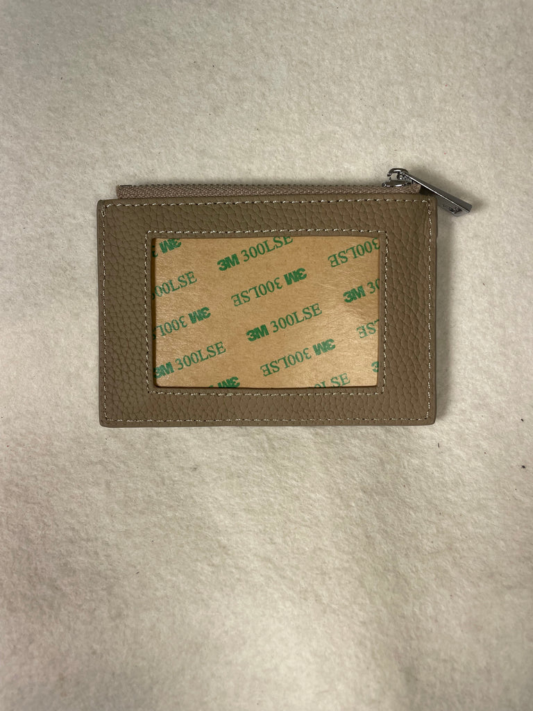 Crafted out of genuine pebbled leather, these everyday wallets have 3 card slots on the back, a zippered pouch (that can hold cards), and a 2" x 3" window on the front for your canvas.