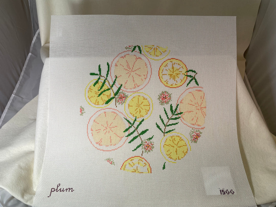The Plum Stitchery 15GG Citrus Round Pillow