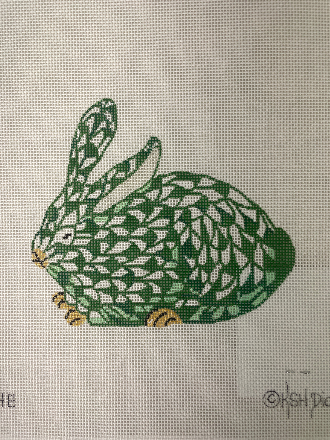 Kate Dickerson Needlepoint OM- 148 Crouching Bunny/ green